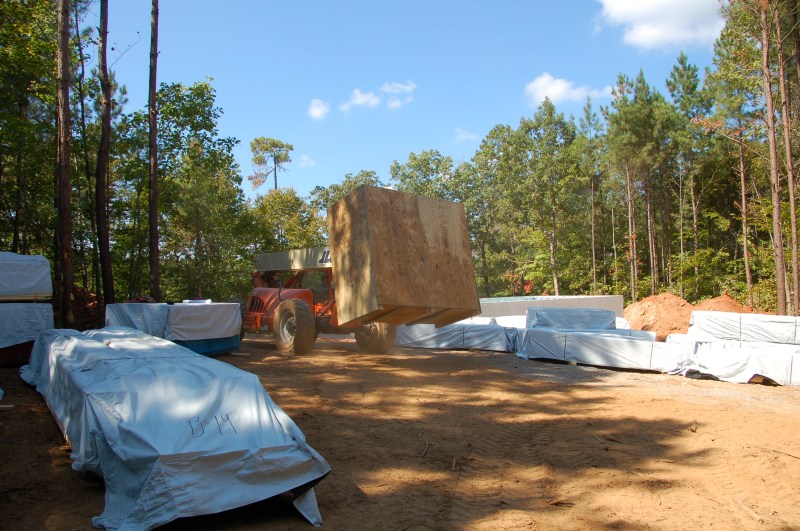 Using a little extra care, George carefully backs up the driveway with the windows, making sure the oversized crate doesn’t tip forward, off the fork-lift
