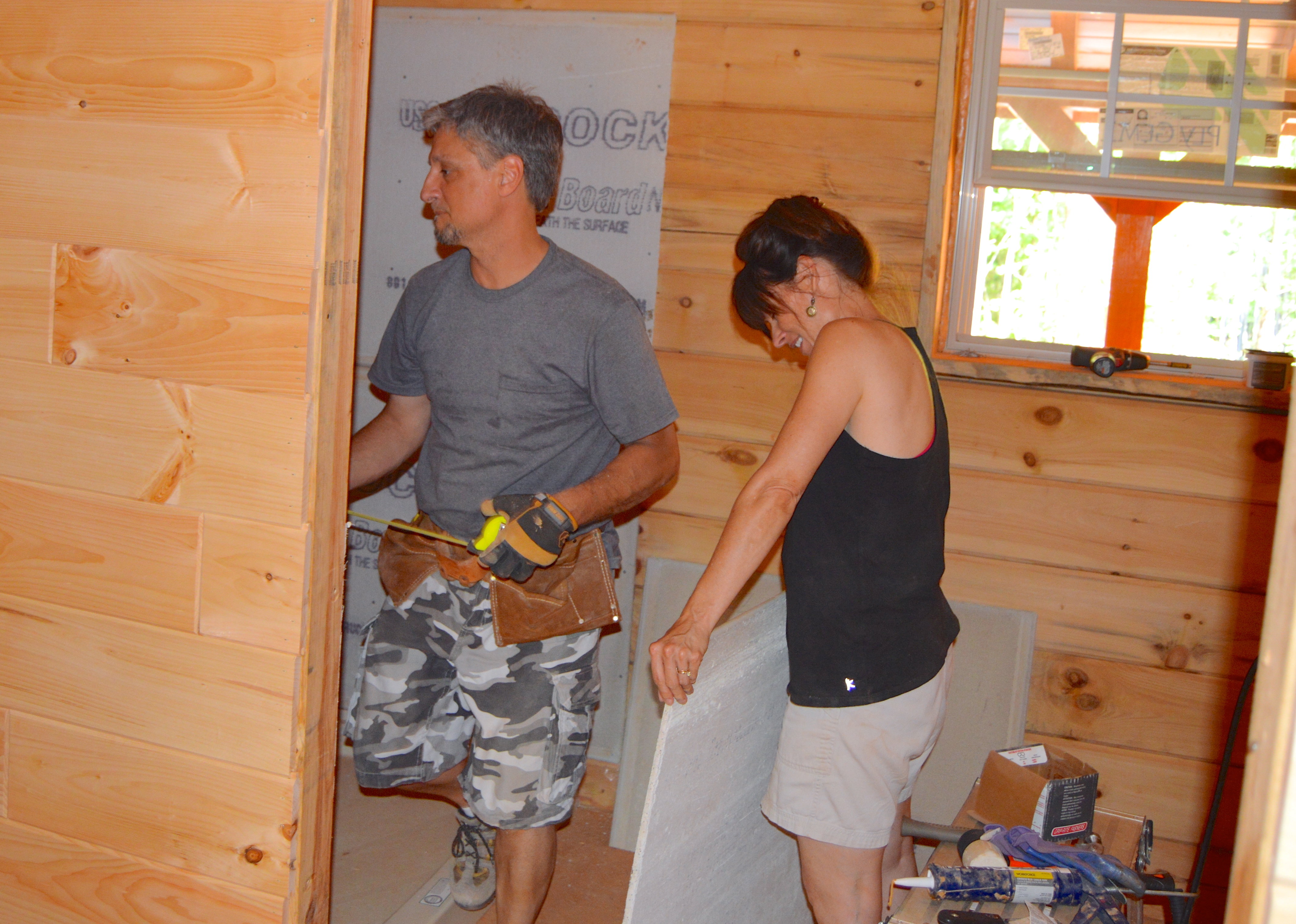 having tired of construction work, Max takes over my camera while I step in to help Dave with the shower stall