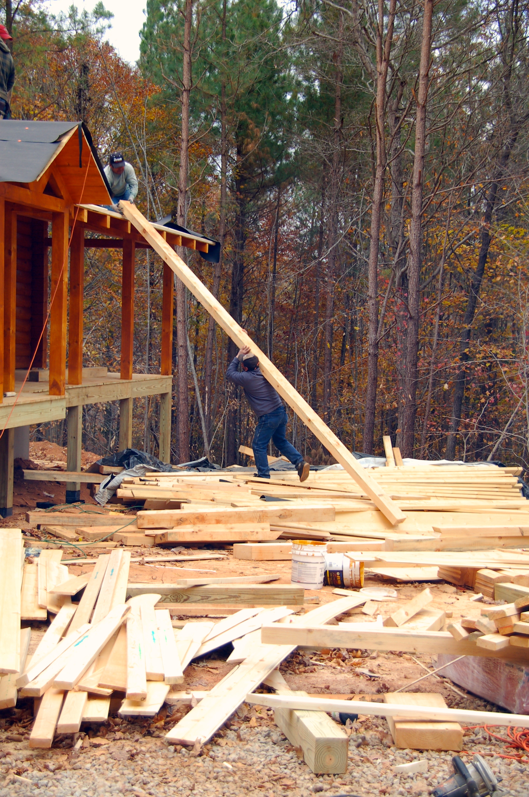 Mateo hoists another timber up to Miguel