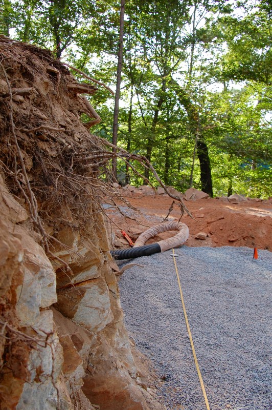looking towards the lake with the rock wall to the left