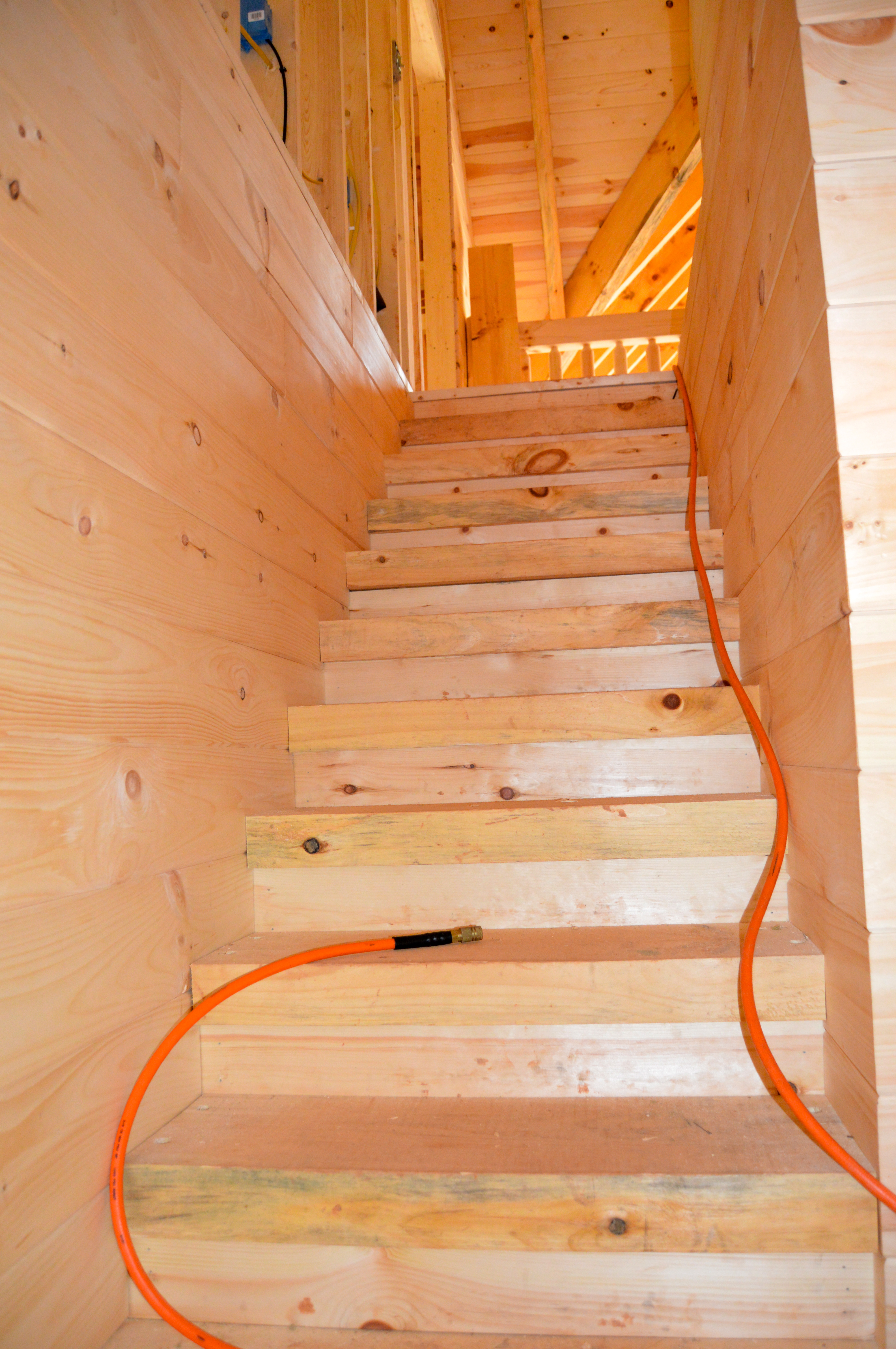 looking up the stairs at the completed walls