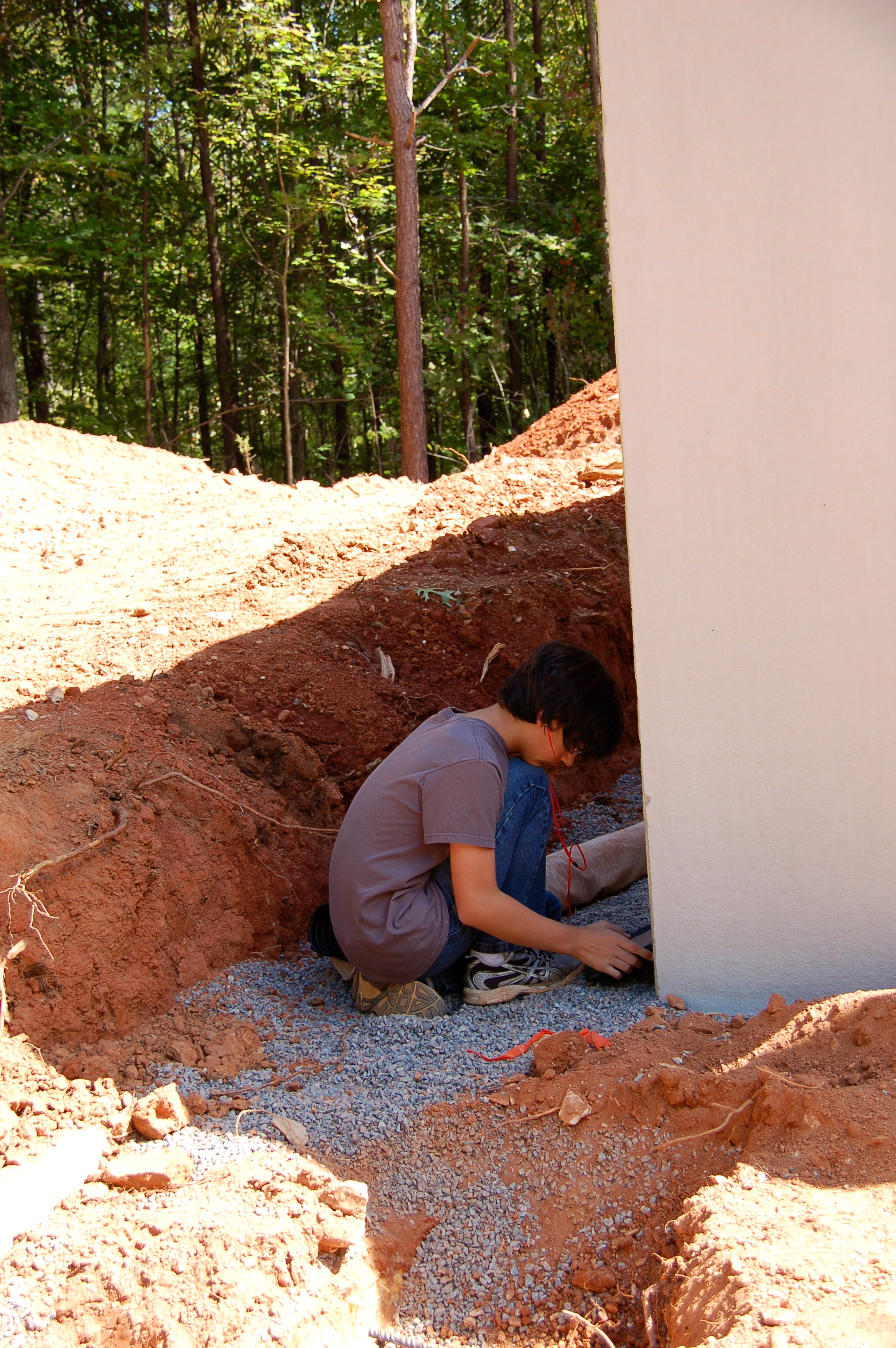 Max finds a quiet corner out of the sun where he can escape the bees and play his iPad