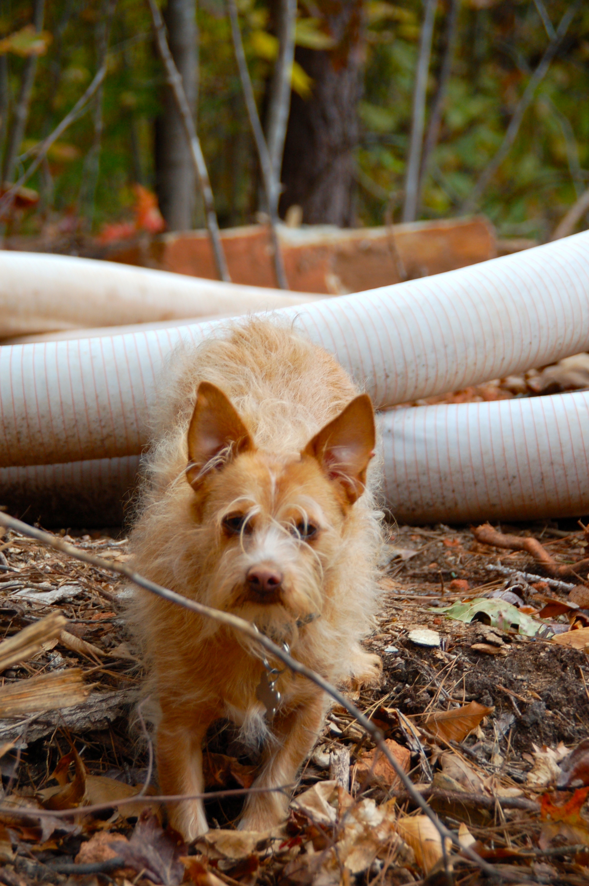 Bingo’s job is to check every pile of wood for snakes and varmints.