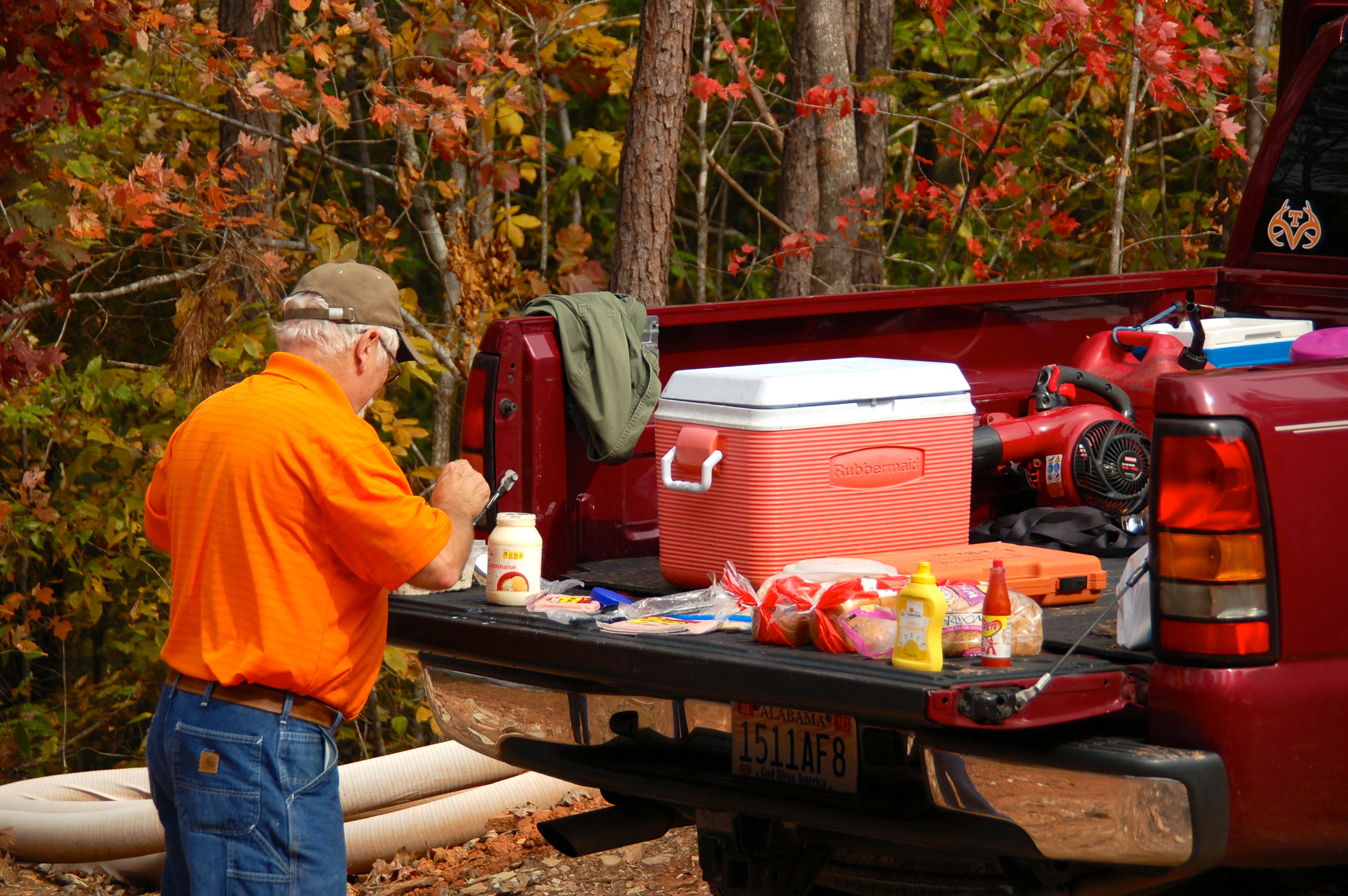 at noon, Mr. Lipham opened up his tailgate and made lunch for the crew