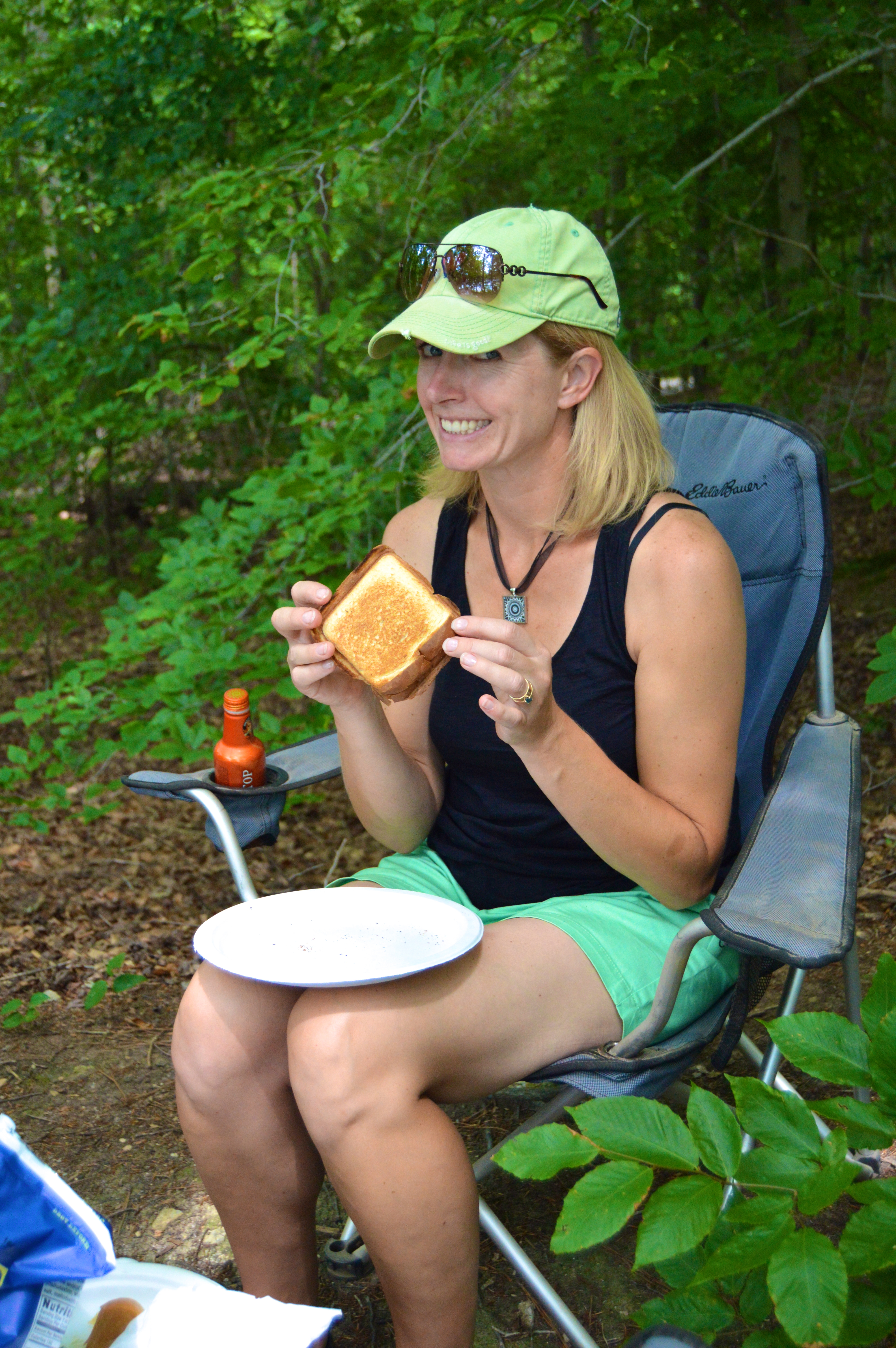 Megan, getting ready to bite into gooey deliciousness