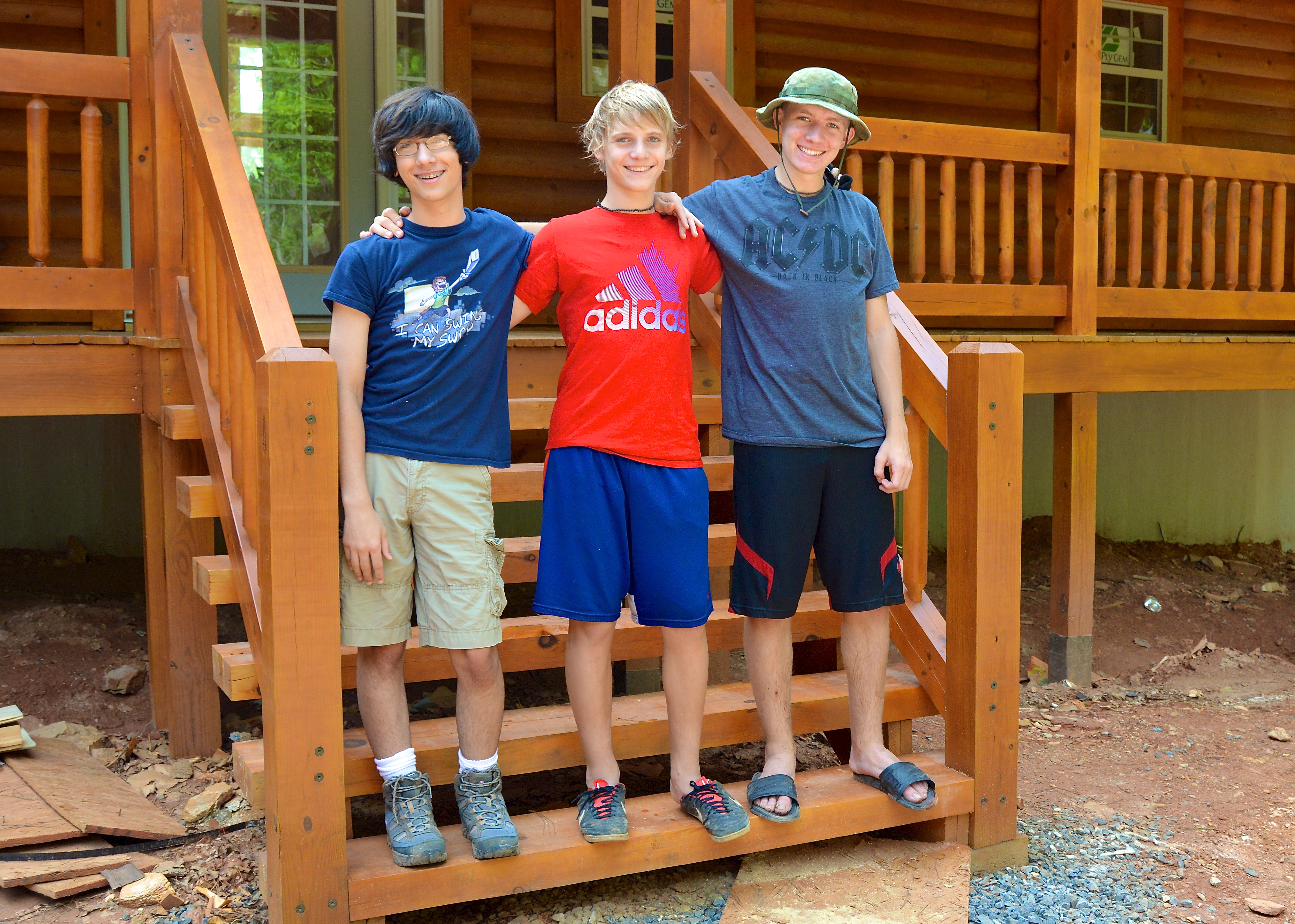 cousins, Max, Adam and Jake, pause for a photo op on the front porch stairs before heading inside to take a look