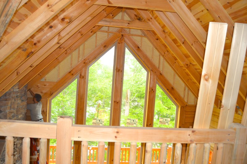 Dave starts placing T & G along the left side of the windows