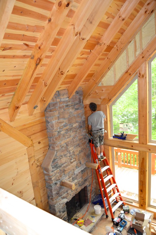 he continues along the left until he reaches the as high as he can before switching ladders