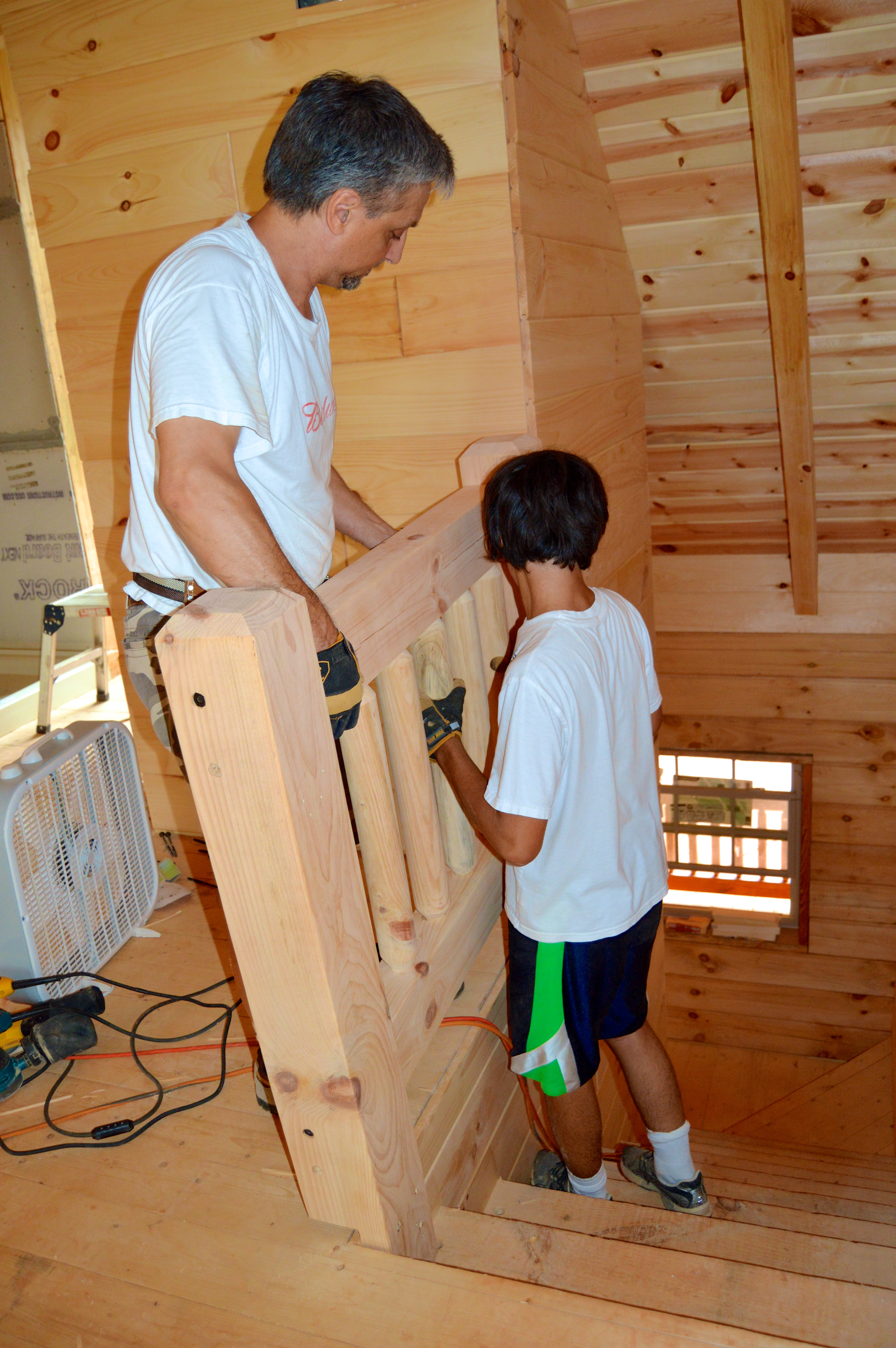 next, they secure the banister in place