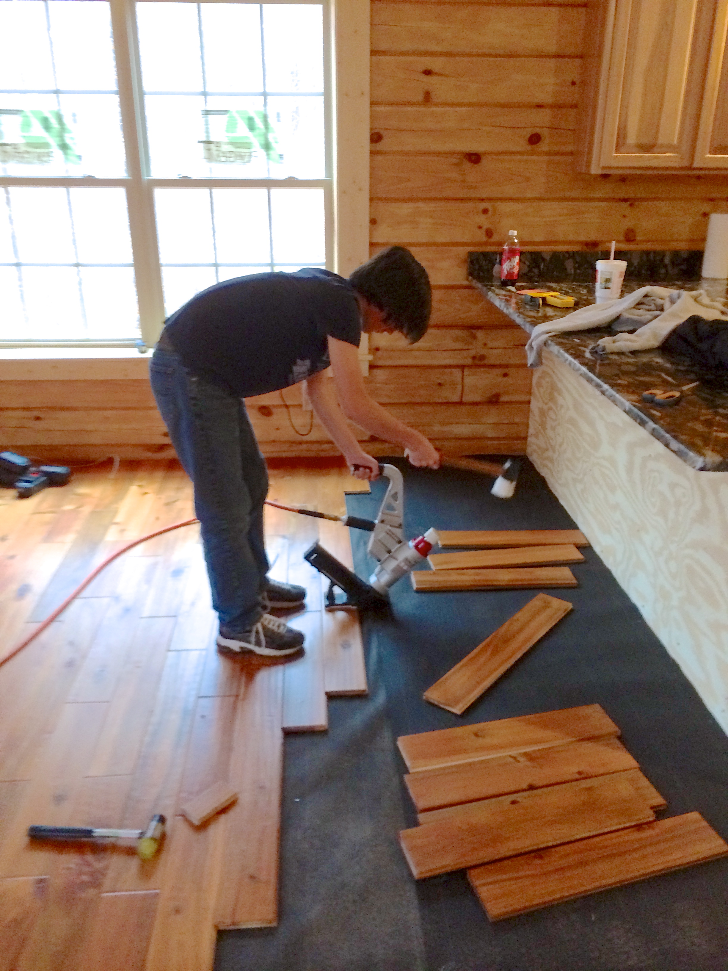 Max learns how to lay flooring