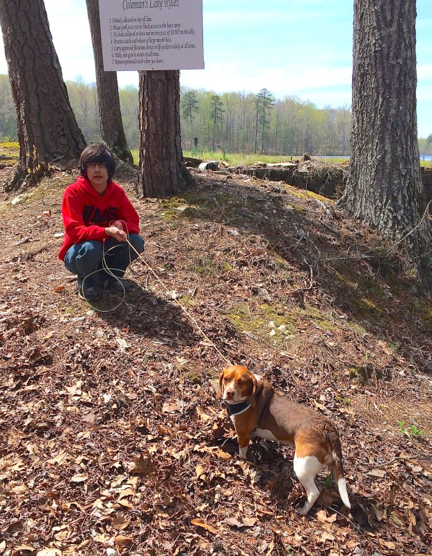 Max takes Pancake down to the spot where we first found him a year ago….this is his first visit back to the lake since then, which is why he remains on a leash