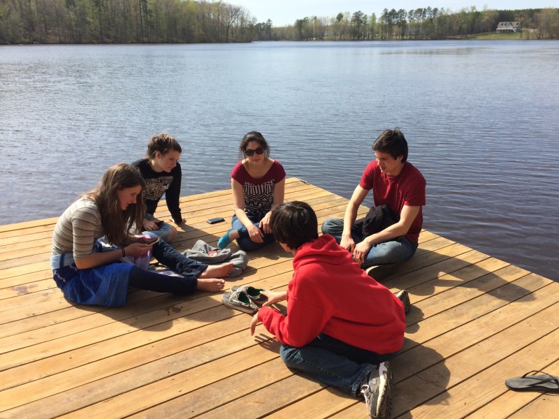 Dave and I leave them to hang out on the dock while we head back up and rejoin Grandma Ginger at the picnic table