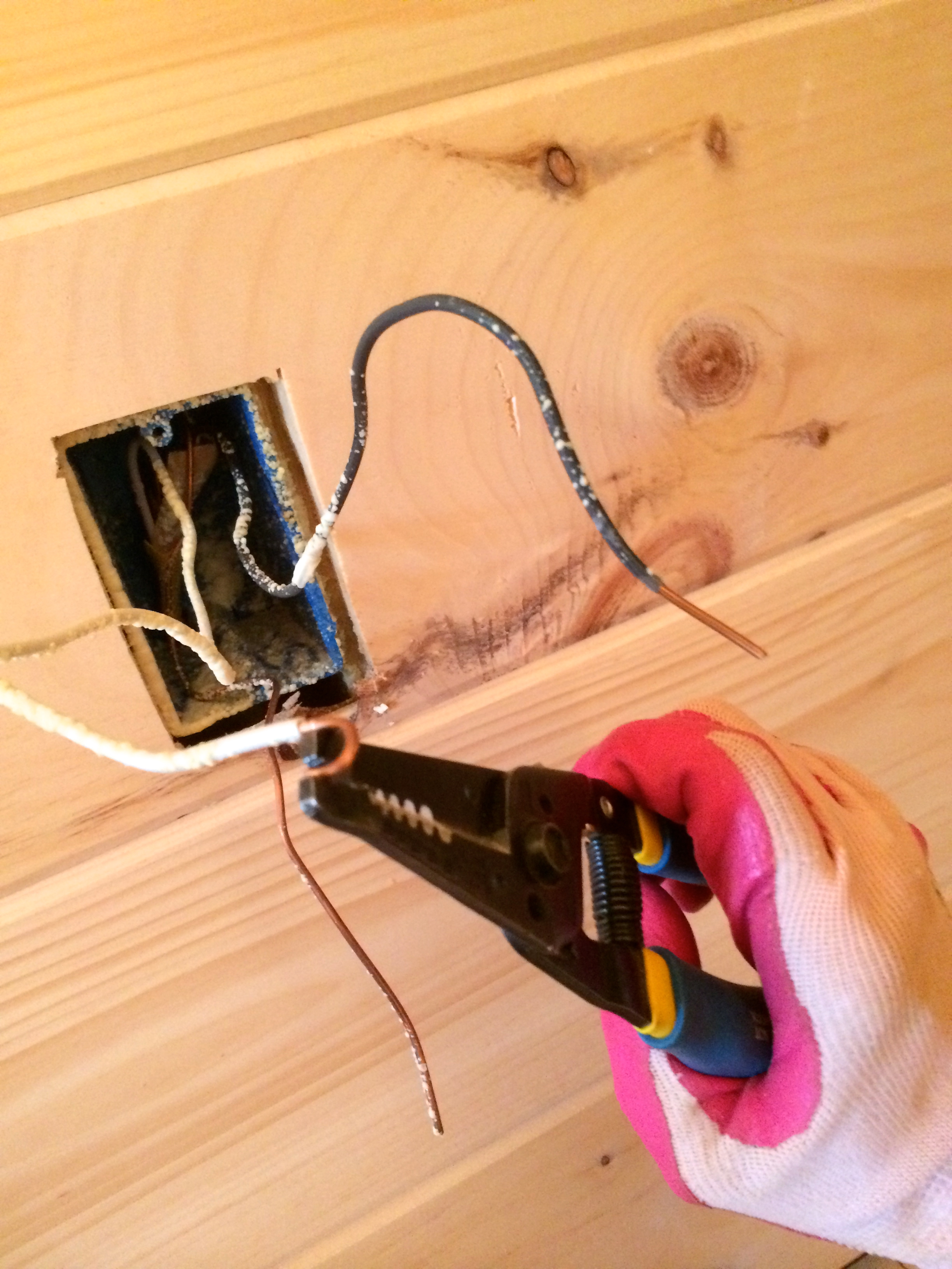 grabbing the tip of each wire, I use the pliers to bend each of the ends