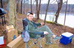 - Waffles stands by, ready to help Dave, while Ginger and Erin pull stuff out of the cooler